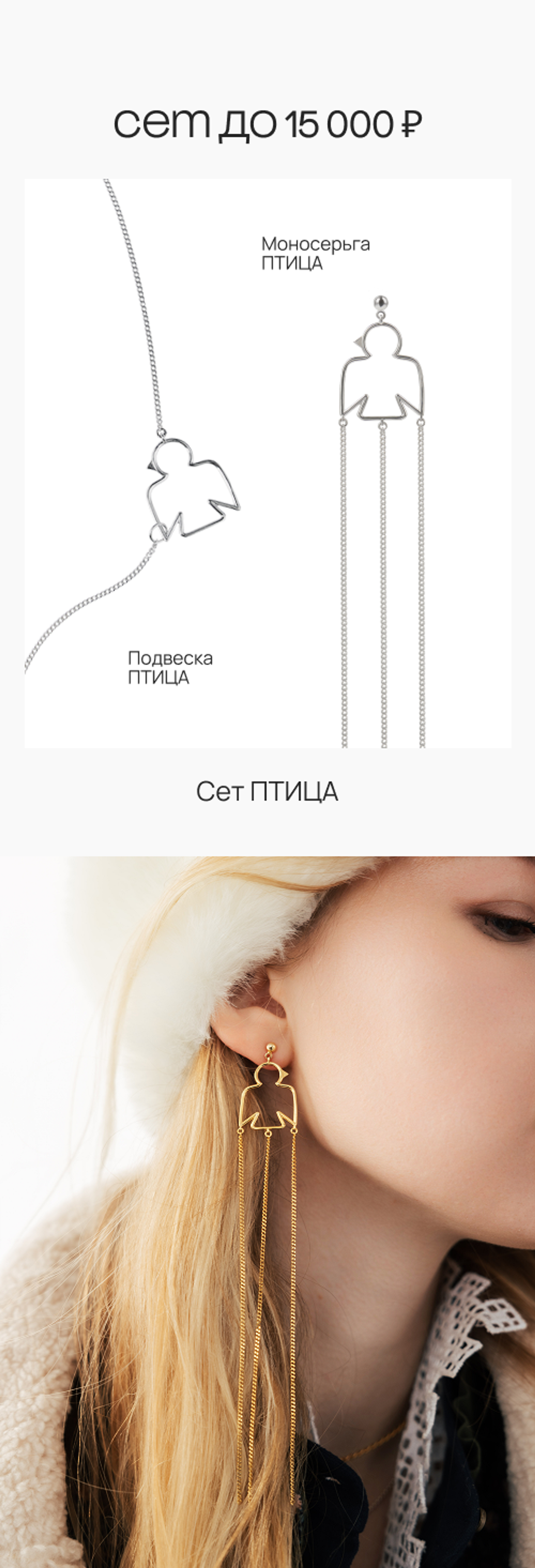 серьги, кафф и подвеска