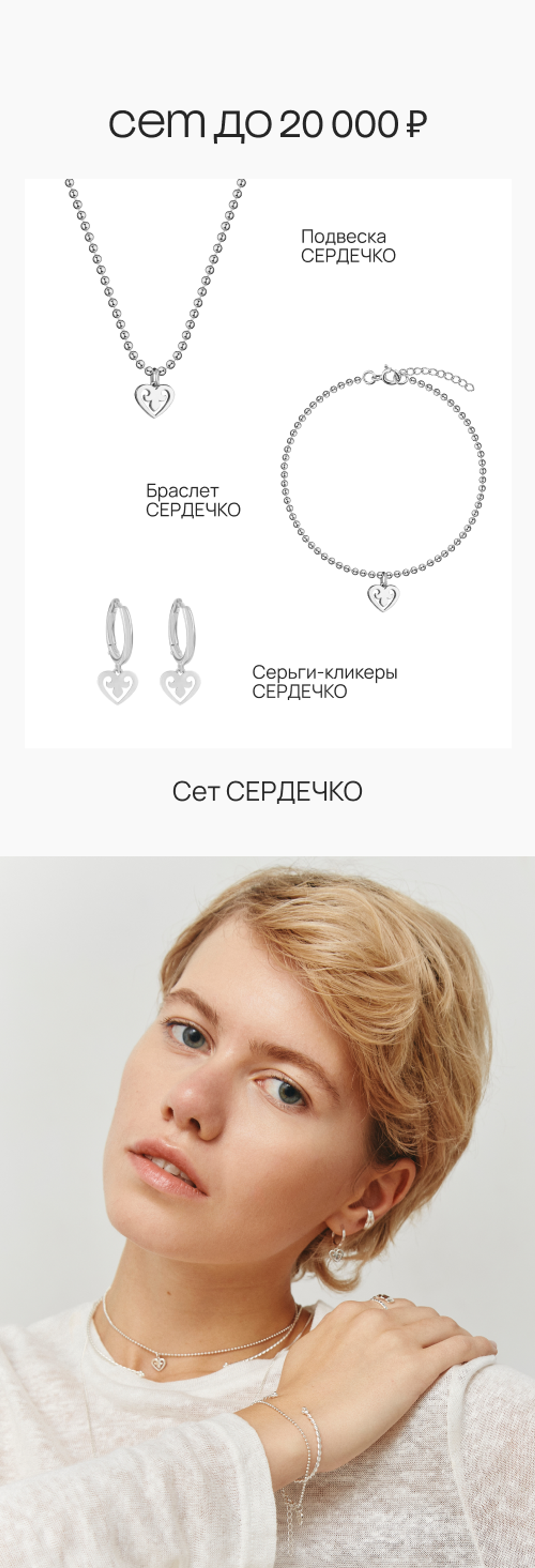 подвеска, браслет и серьги-кликеры