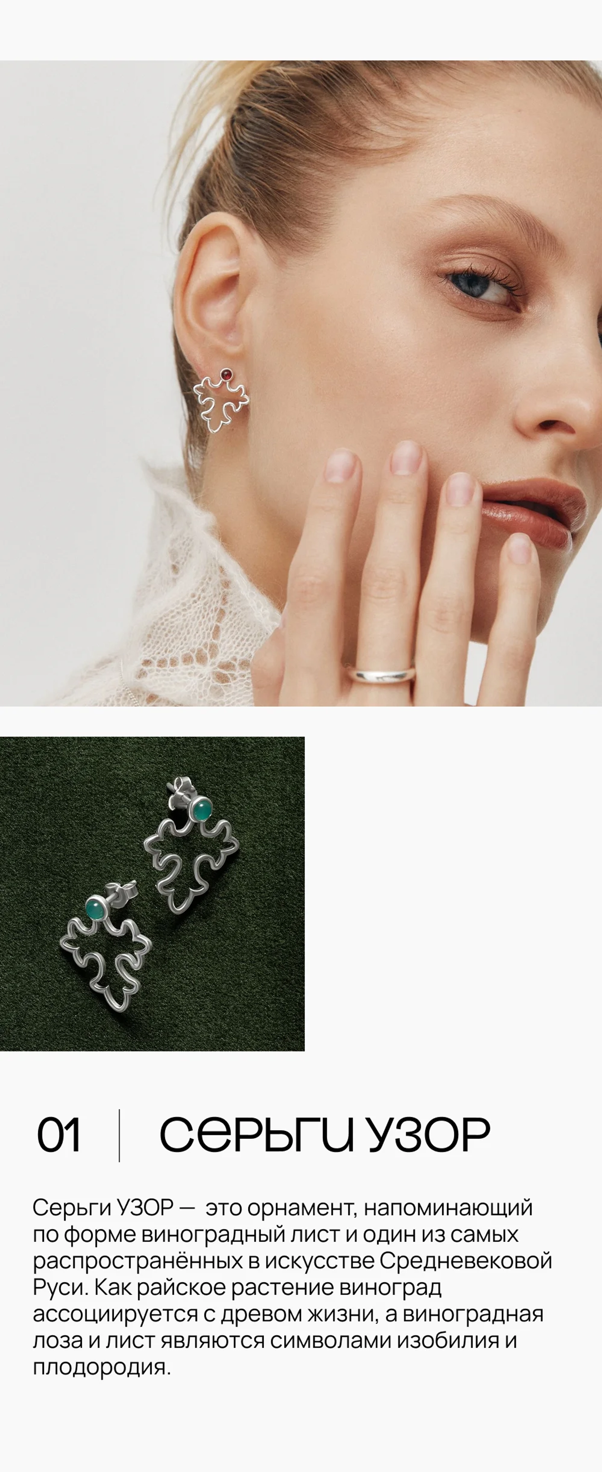 с орнаментом в форме виноградной лозы с натуральными хризопразами