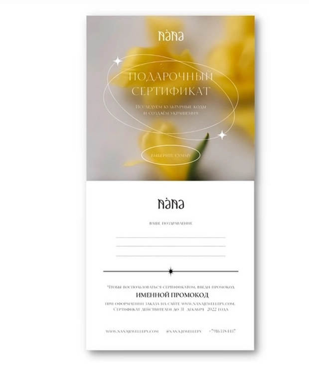 Сертификатом можно оплатить любое украшение Nána Jewellery.