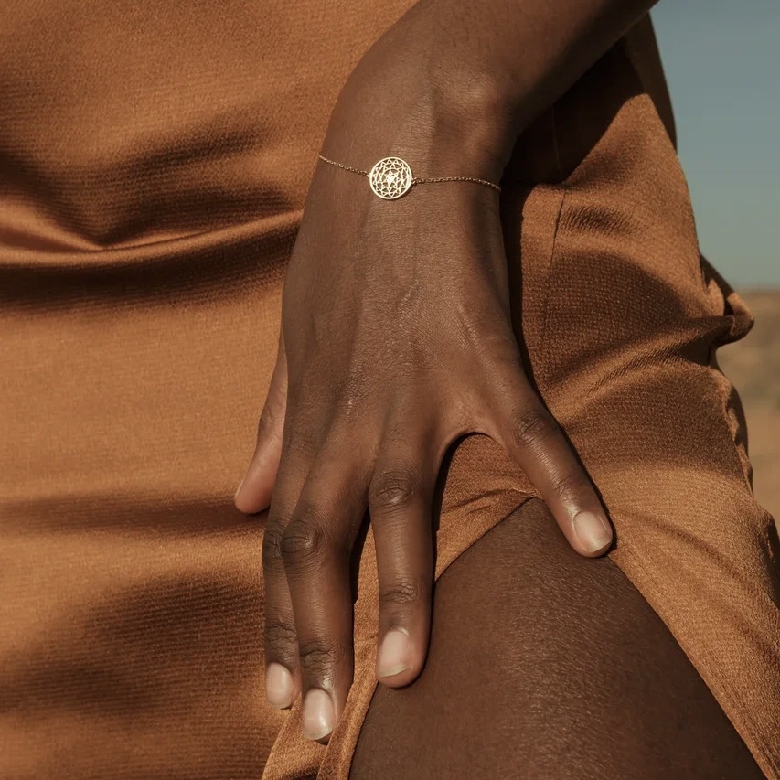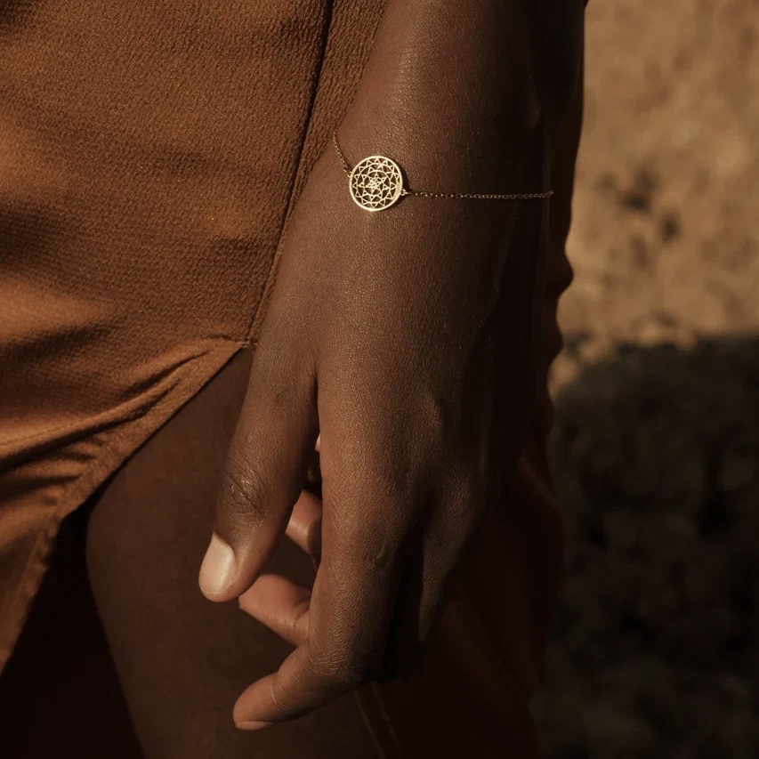 Браслет t'ibek'a [защита] с 1 ажурным оберегом. В дизайне использован национальный эфиопский узор, который обычно украшает щиты и символизирует силу, защищенность и независимость.