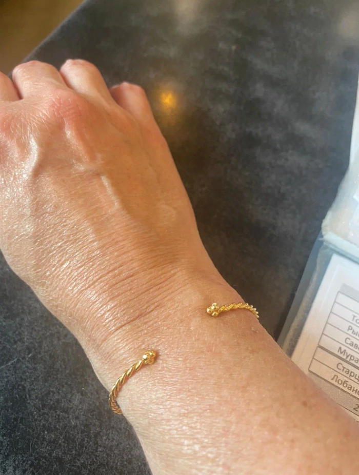 На разъёме браслета — тройка маленьких шариков, дань уважения ювелирной технике "зернь". Это древнейший вид мастерства, при котором из мелких шариков металла создавали узоры, тем самым придавая украшению интересную фактуру.