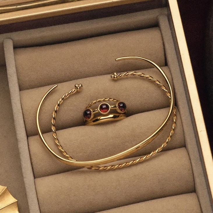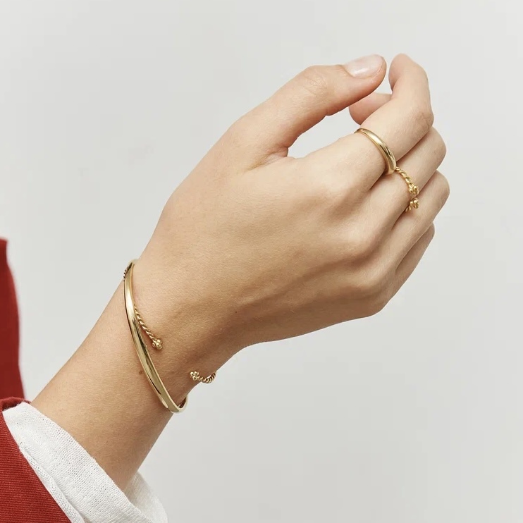 На разъёме браслета — тройка маленьких шариков, дань уважения ювелирной технике "зернь". Это древнейший вид мастерства, при котором из мелких шариков металла создавали узоры, тем самым придавая украшению интересную фактуру.