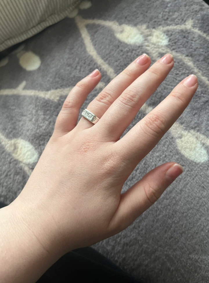 Очень классное, идеально село на палец, нравится гравировка и как исполнено