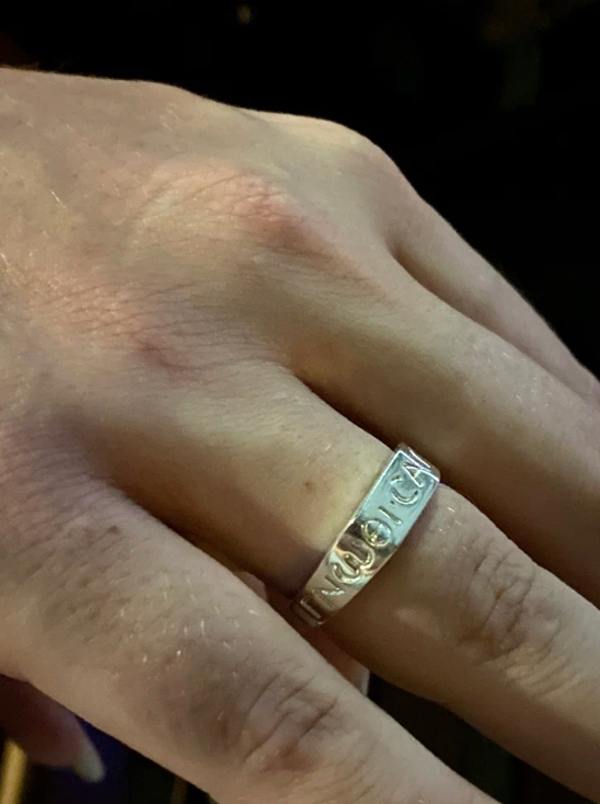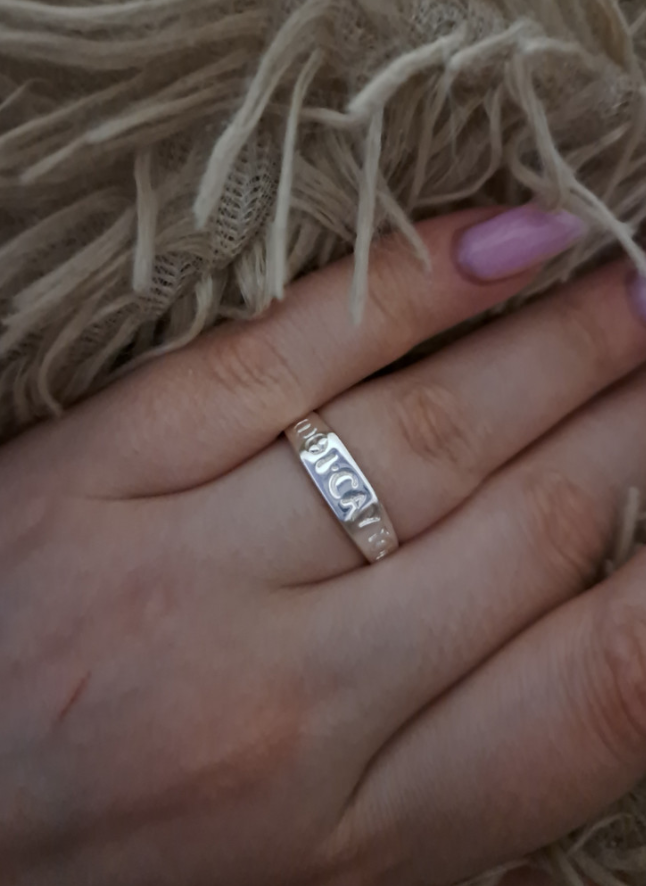 Покорило меня с первого фото. Надпись на греческом в самое сердце! Вживую еще лучше! Кольцо очень аккуратное! А какая упаковка, история надписи, послание! Всё выполнено с душой. С данным кольцом я приобрела не просто украшение. Спасибо вам!