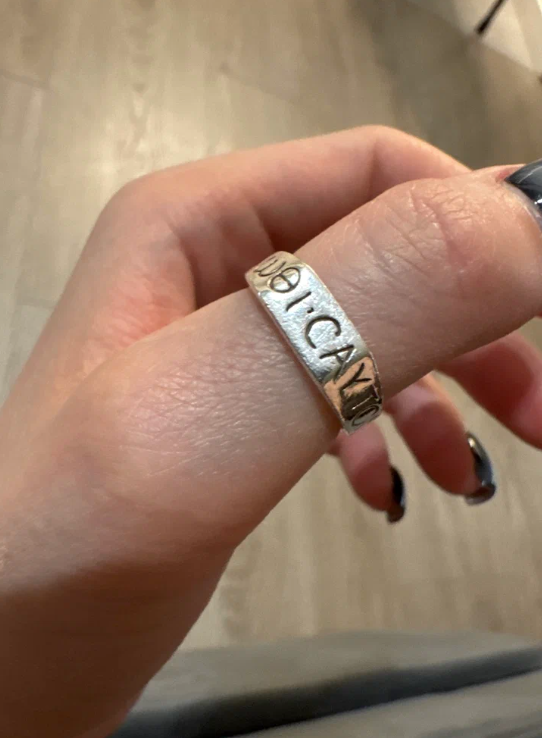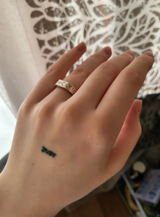 Красивое кольцо с вдохновляющей надписью. Очень давно хотела, смотрела на этот товар и наконец решилась! единственное, не угадала чуть с размером и вместо мизинца ношу теперь на большом пальце)