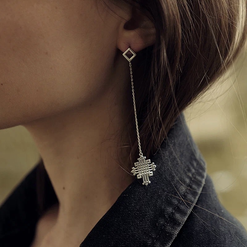 Прекрасное качество и дизайн, очень сложно найти подобное. Непривычно из-за длины серьги, но мне очень нравится