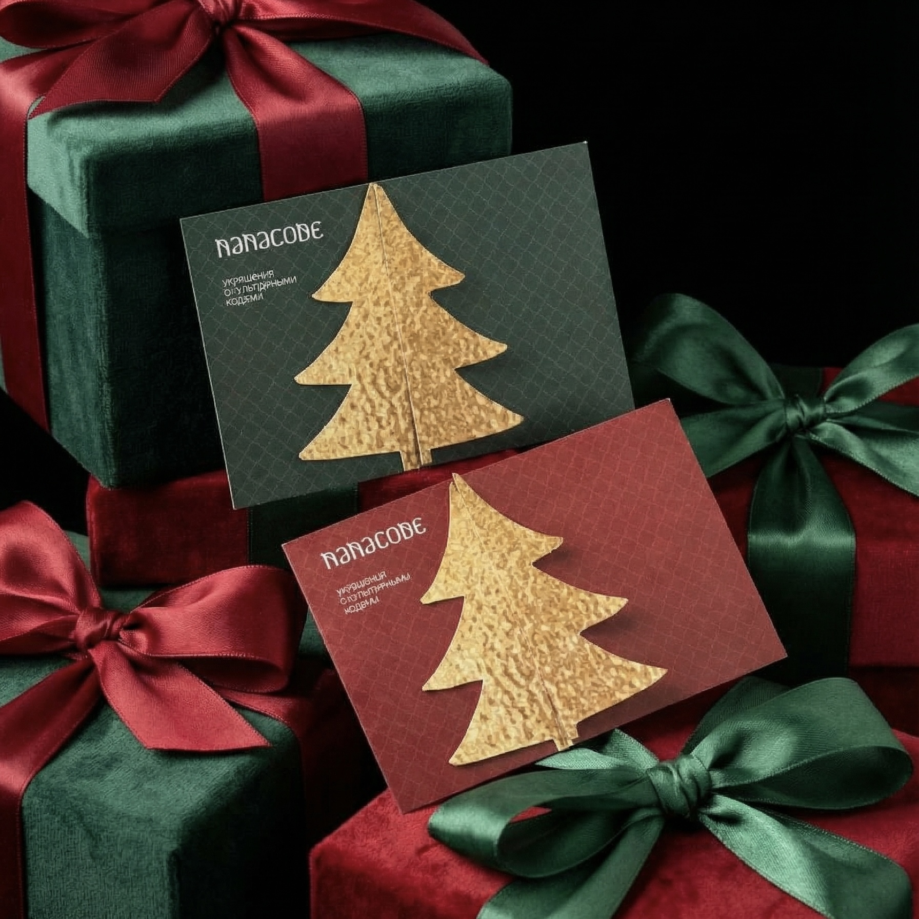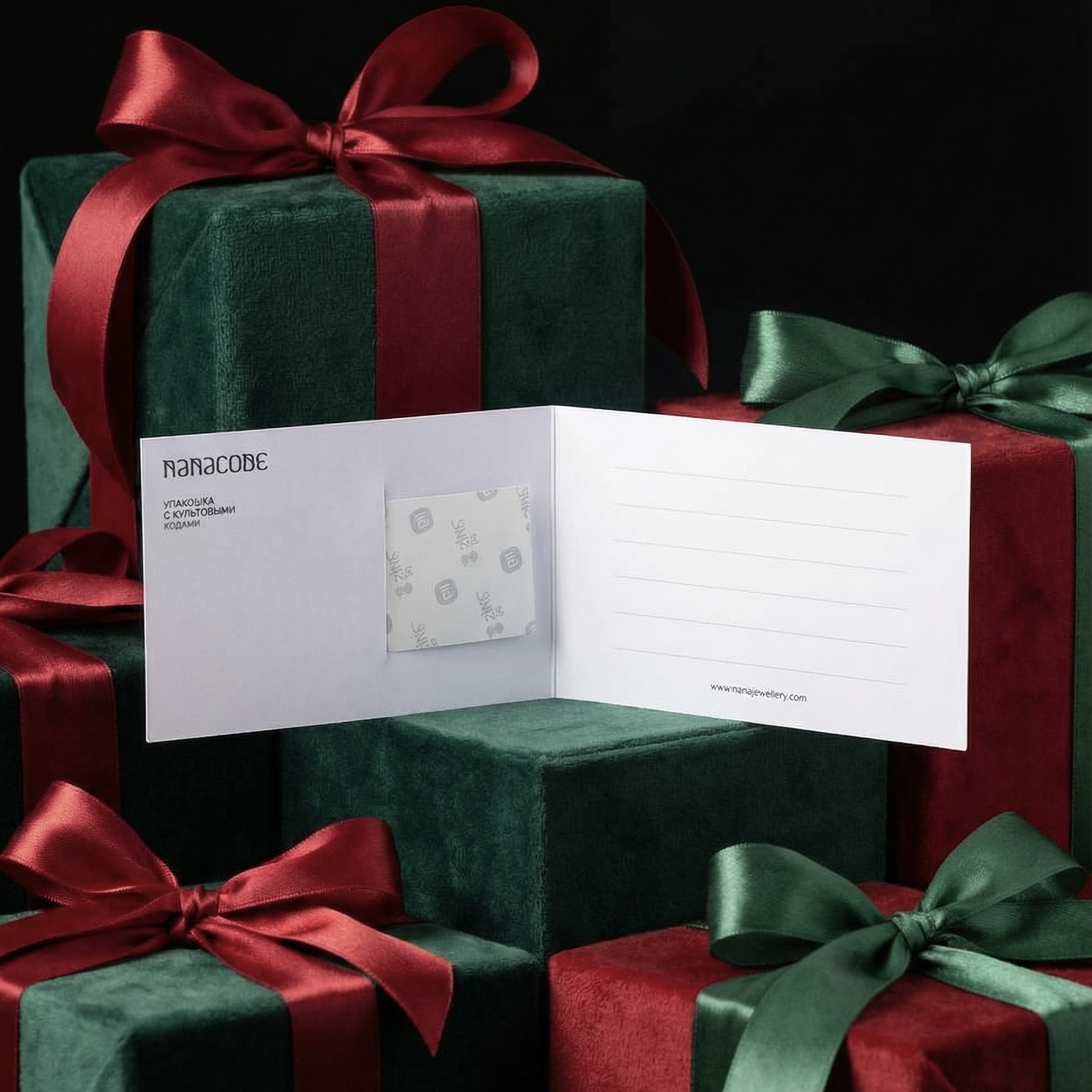 К каждому украшению NANACODE теперь можно приложить новогоднюю открытку с ёлочкой. Специально созданная к празднику, для себя любимых или дорогих близких.