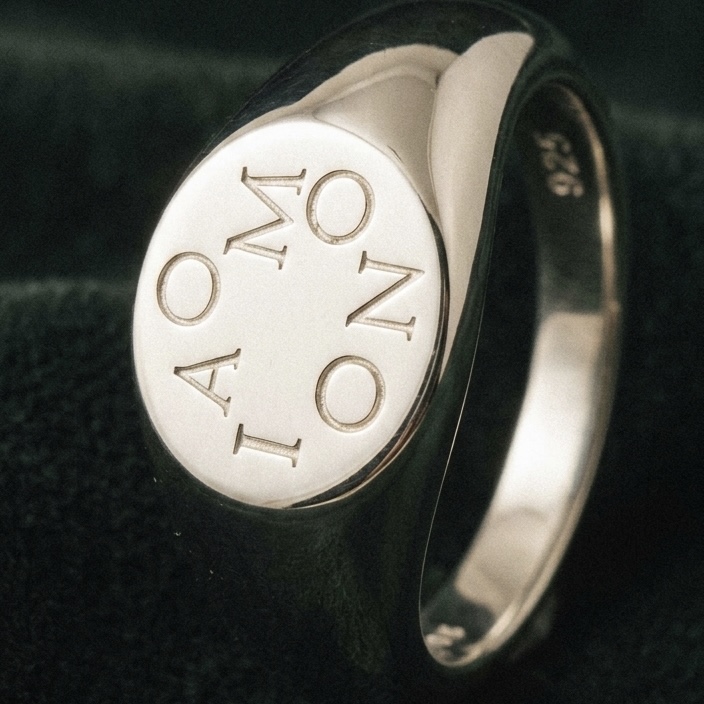 Серебряное и позолоченное кольцо-печатка с надписью «OMONIA» (Ομόνοια). В переводе с греческого — «согласие», «единство» или «гармония».