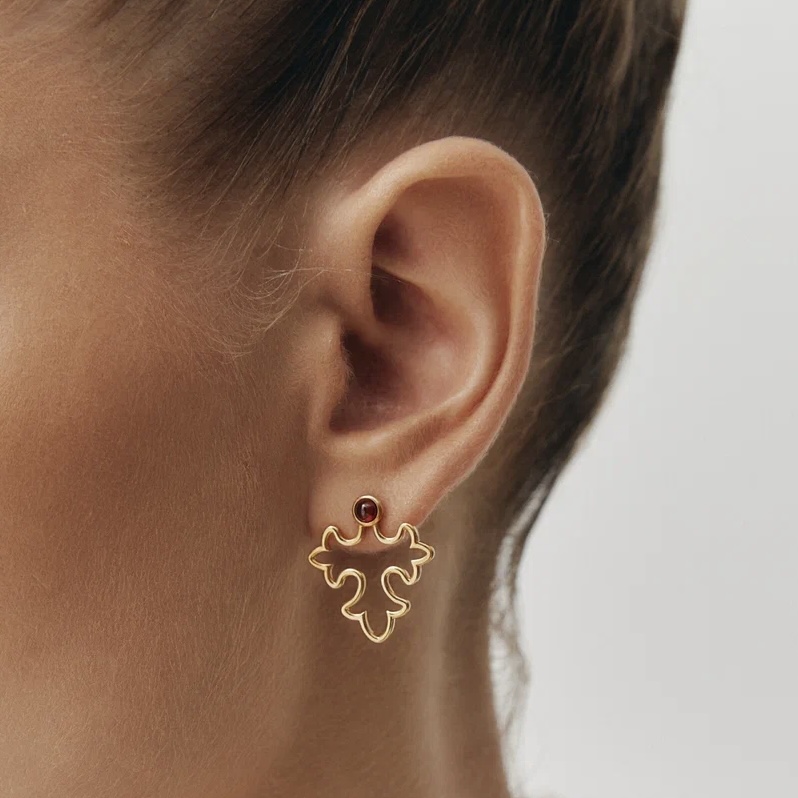 В моей коллекции уже несколько украшения от бренда NANA. Очень понравилась данная модель, не видела ничего подобного, а в сочетании с гранатом выглядит чарующе. Форма сережек идеально подошла.