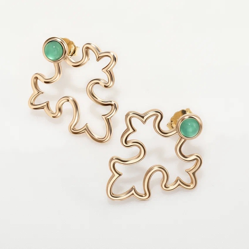 Серебро 925 пробы, позолота 999 пробы, природные хризопразы