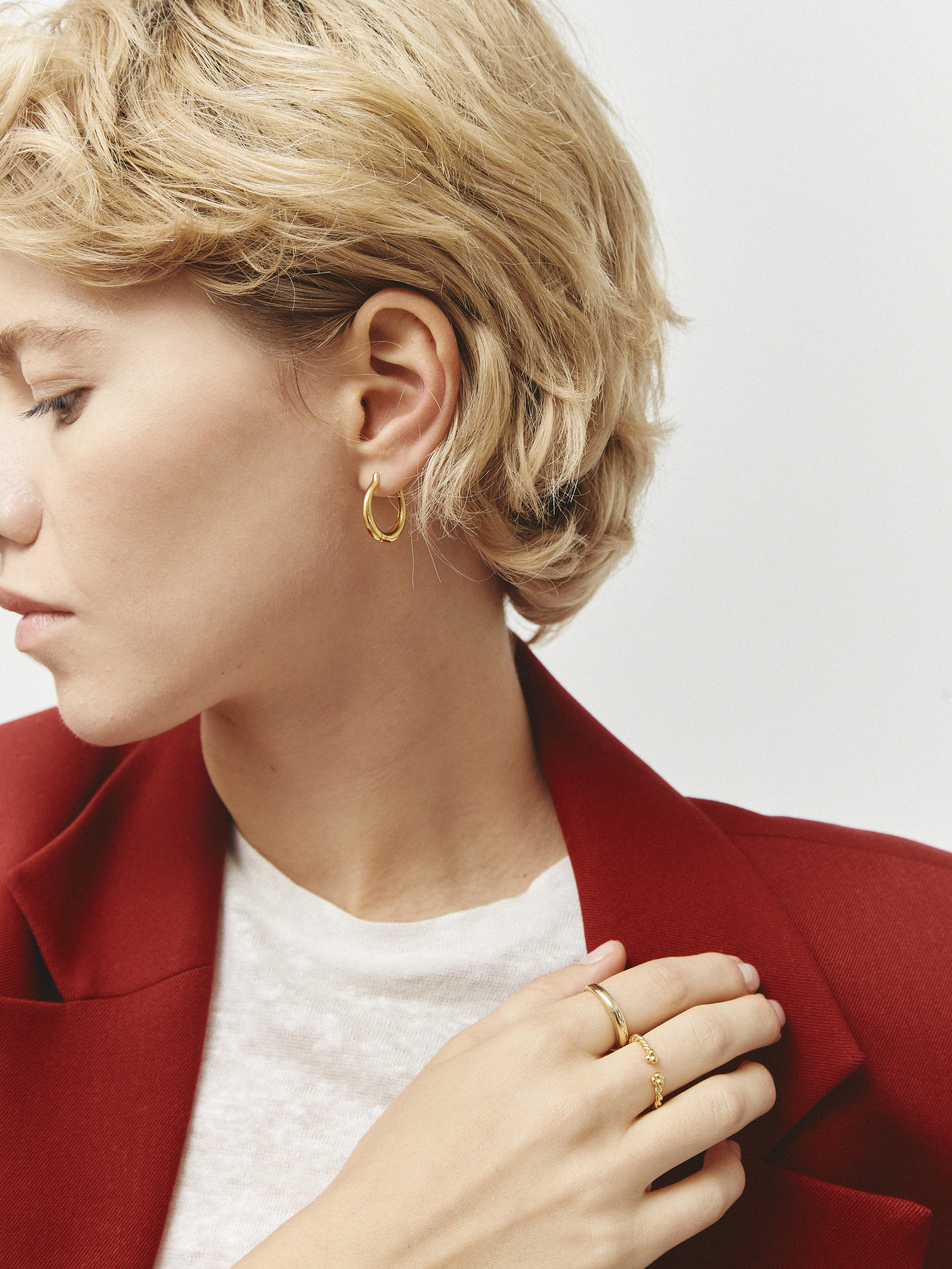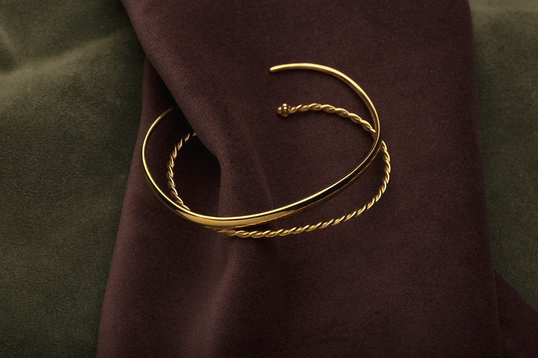 При создании украшений из сета ГЛАДЬ позолота коллекции NOMAD мы вдохновлялись традиционной формой данных украшений на каждый день в виде «рогалика». Их носили девушки из скифских племён.