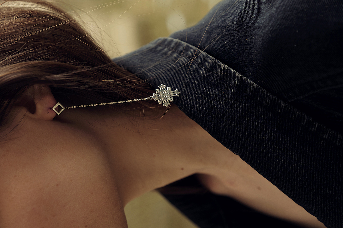 В сет MESKEL входят подвеска-галстук MESKEL и моносерьга MESKEL из коллекции ETHIOPIA.