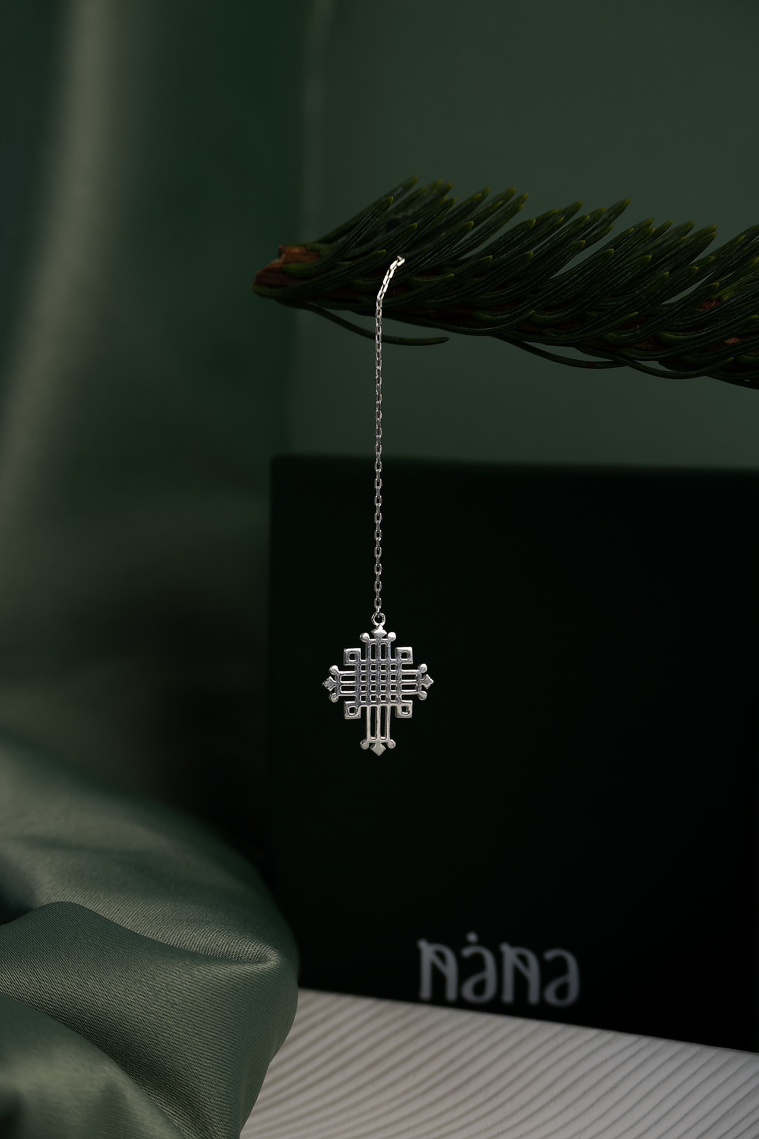 В сет MESKEL входят подвеска-галстук MESKEL и моносерьга MESKEL из коллекции ETHIOPIA.